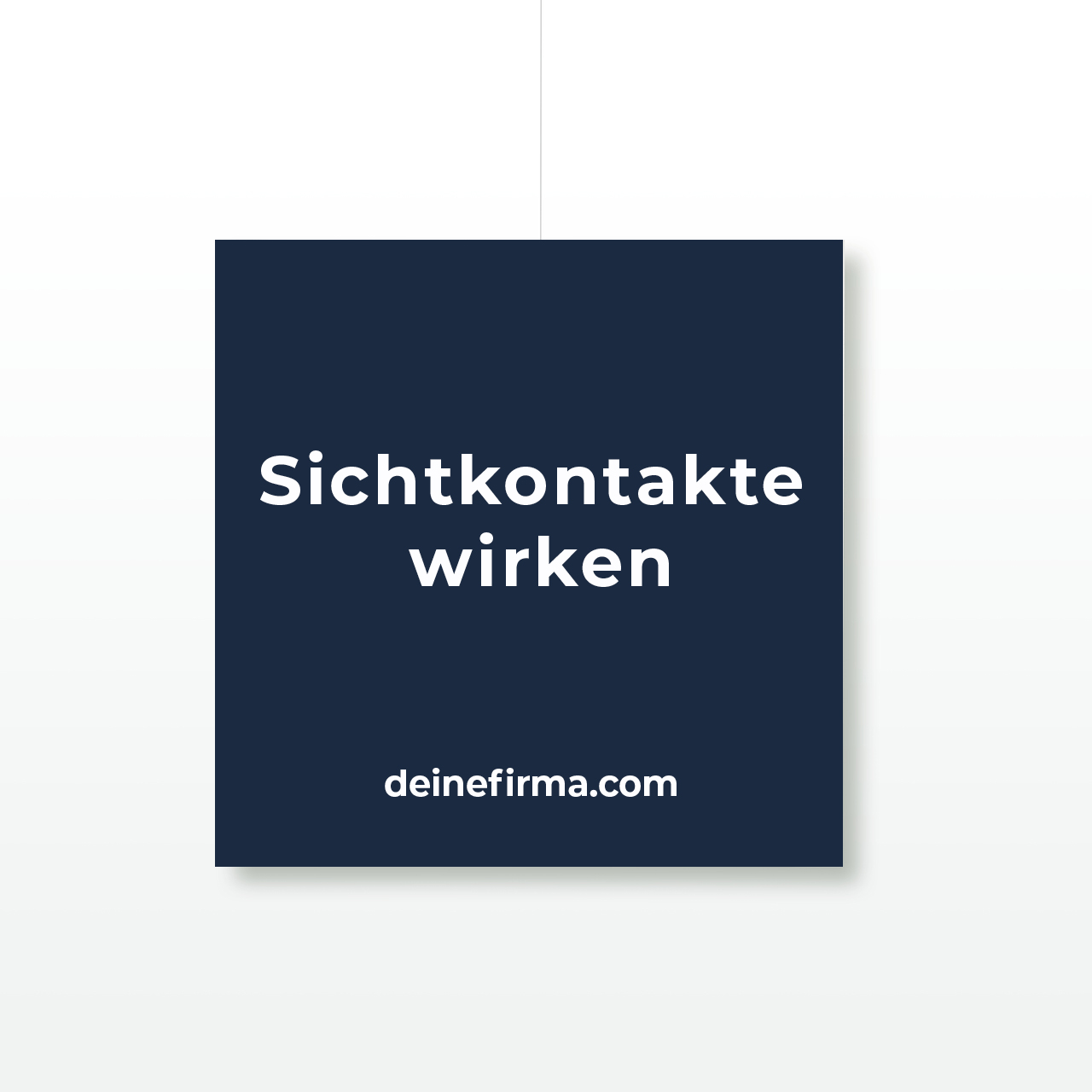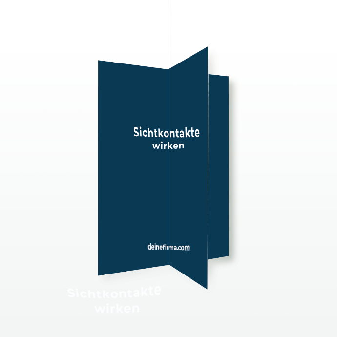 Durch die Art der Befestigung – entweder eingeclipst in Klemmschienen unten und oben am Plakat, in einem Spannrahmen oder als reiner Karton-Deckenhänger – bleibt der Deckenhänger immer flexibel, bewegt sich leicht im Windzug und erreicht so noch höhere Aufmerksamkeit.