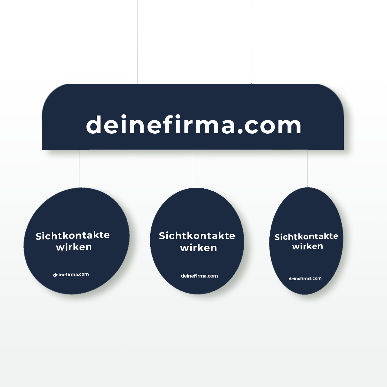Durch die Art der Befestigung – entweder eingeclipst in Klemmschienen unten und oben am Plakat, in einem Spannrahmen oder als reiner Karton-Deckenhänger – bleibt der Deckenhänger immer flexibel, bewegt sich leicht im Windzug und erreicht so noch höhere Aufmerksamkeit.